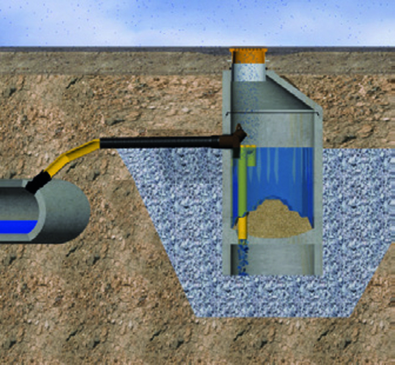 Partikulært materiale som tilføres IFS-kum vil bli avsatt i sandfang slik at innløpet til magasinet ikke gjentettes.