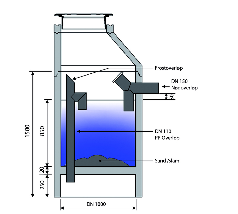IFS-kum kan leveres uten nødoverløpnår det ikke er mulighet for tilknytning til avløpsledning.