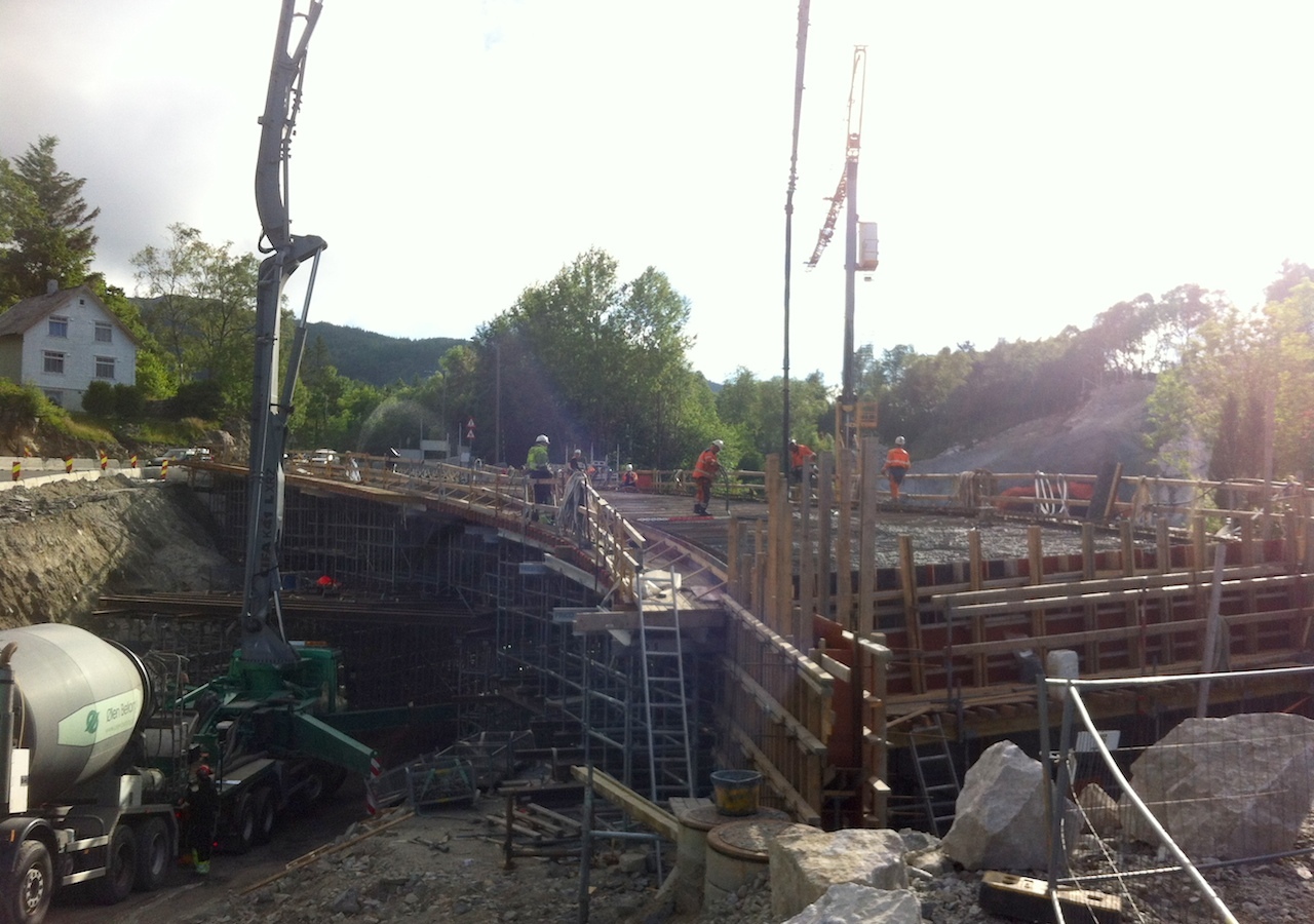 Vi har rigget opp et mobilt blandeverk for å serve leveransen på prosjektet. Leveransene vil pågå fra sommer 2014 og til årsskiftet 2016/2017. Det vil totalt bli produsert ca 30 000 m³ til prosjektet. I uke 26 var personell fra Teknologi nede og gjennomførte Risikoanalyse av fabrikk. Montering, fabrikk og uteareal var tilfredsstillende ihht. risikoområdenene som er prioritert fra Ølen Betong sentralt.
