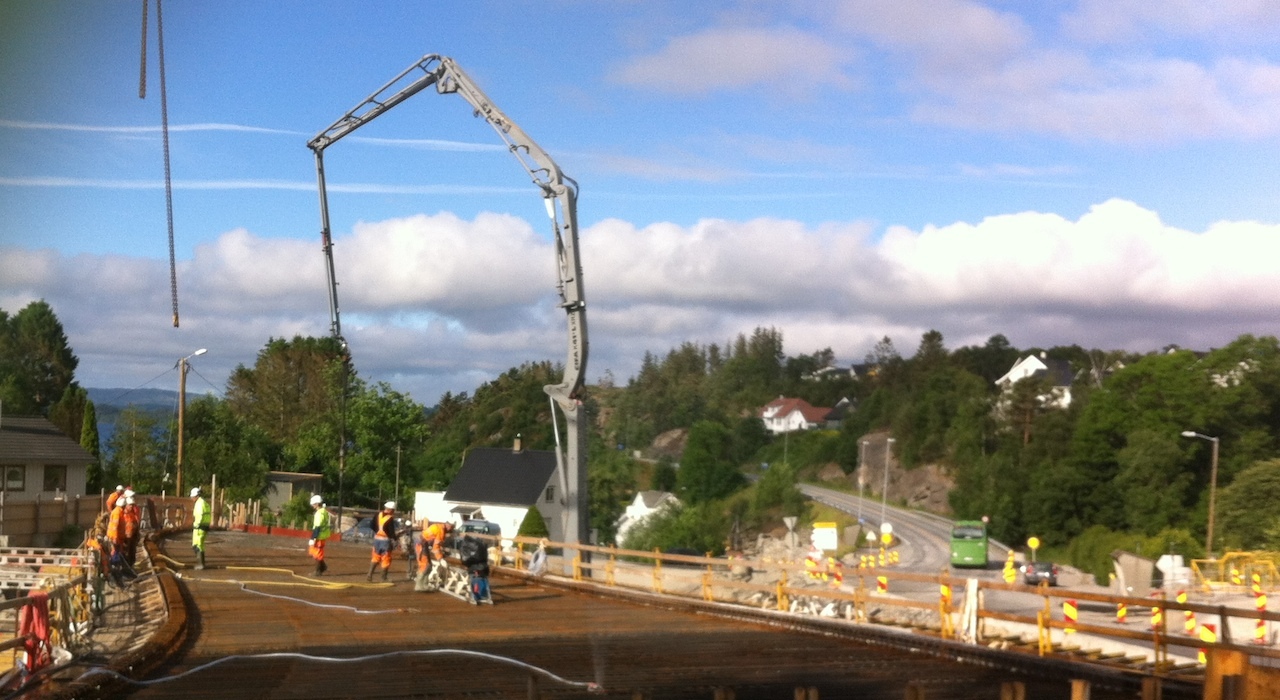Tirsdag og torsdag uke 27 ble det prøvestøpt plater med lettbetong (LB55) ved Sandsfjordbru. Personell fra Ølen Betongs teknologiavdeling har i flere måneder jobbet for å få optimalisert resepten som skal produseres med Stalite. Det er en klinker som er transportert fra USA med båt til Ølensvåg.